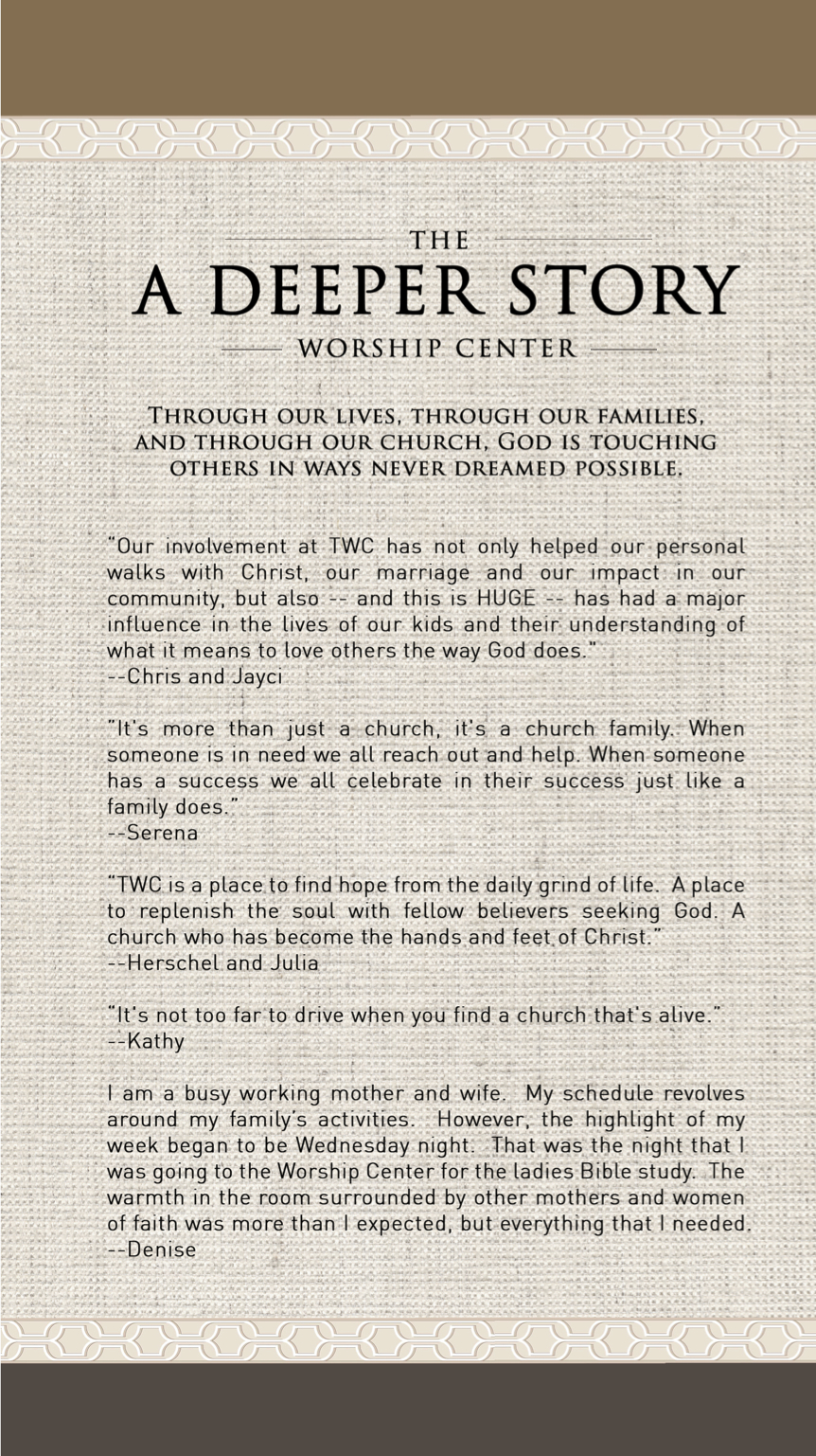 The Worship Center·14000 Crown Court, Suite 105· Woodbridge, VA 22193 · Tel: (703) 928 - 2105 · Sundays 10:00AM